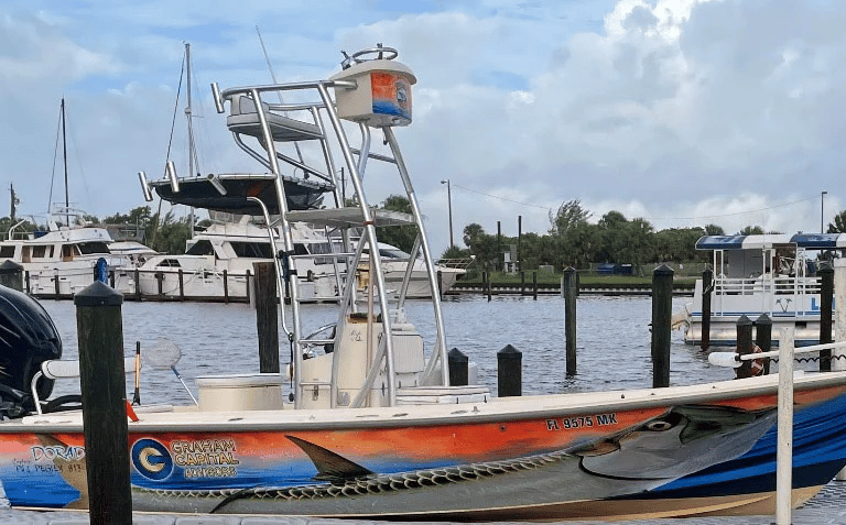 16-foot Carolina Skiff with shallow water access and pop-up blind for stealth.